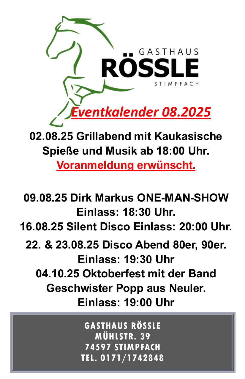Wir betreiben seit 01.04.25 das Gasthaus Rössle(Am Bahnübergang) in Stimpfach. . Events im Rössle Stimpfach TEX MEX Norwegischer Lachs Burger Angus Bacon - Cheese